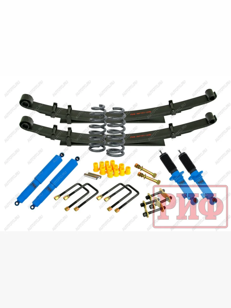 Все компоненты лифт-комплектов РИФ разработаны специально для эксплуатации внедорожника в тяжелых условиях на различных дорожных покрытиях. Амортизаторы с технологией R-AIR и пружины РИФ не только компенсируют вес установленного на внедорожнике дополнительного оборудования (бамперов, порогов, дополнительных топливных баков, лебедок и прочего), но также существенно повышают грузоподъемность автомобиля.