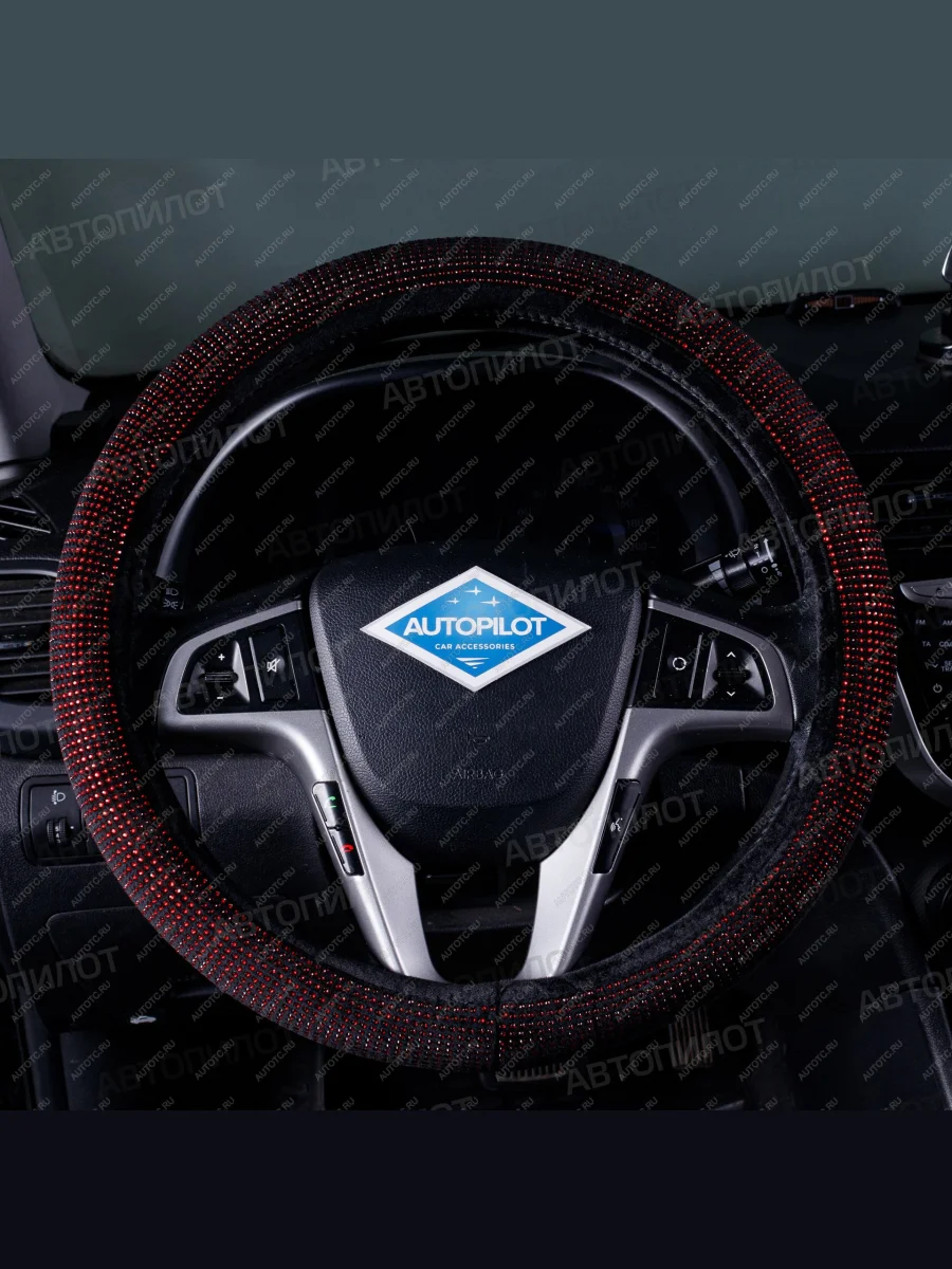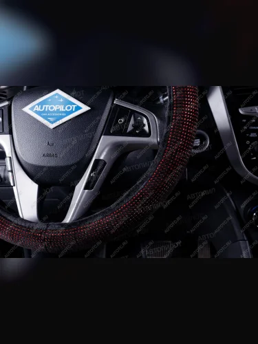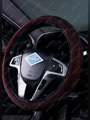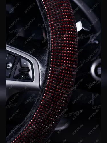 Оплётка на руль (37-39см BLW-016 текстиль+стразы) Автопилот (красный) В Тюмени Тюменской области