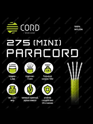 Паракорд 275 (мини) CORD nylon 30м световозвращающий (neon green) CORD 275.n30.lm.n.gr В Тюмени Тюменской области