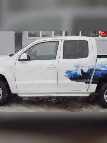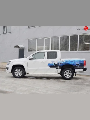 Порожки для ног (труба Ø63) SLITKOFF Volkswagen Amarok (2016-2022) (лист алюминий, профиль сталь) В Тюмени Тюменской области