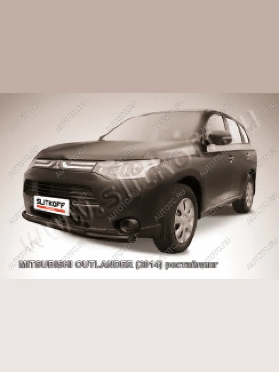 Защита переднего бампера d57+d42 двойная Slitkoff Mitsubishi Outlander (2014-2016) GF (нержавейка с полимерным покрытием в цвет черный) В Тюмени Тюменской области