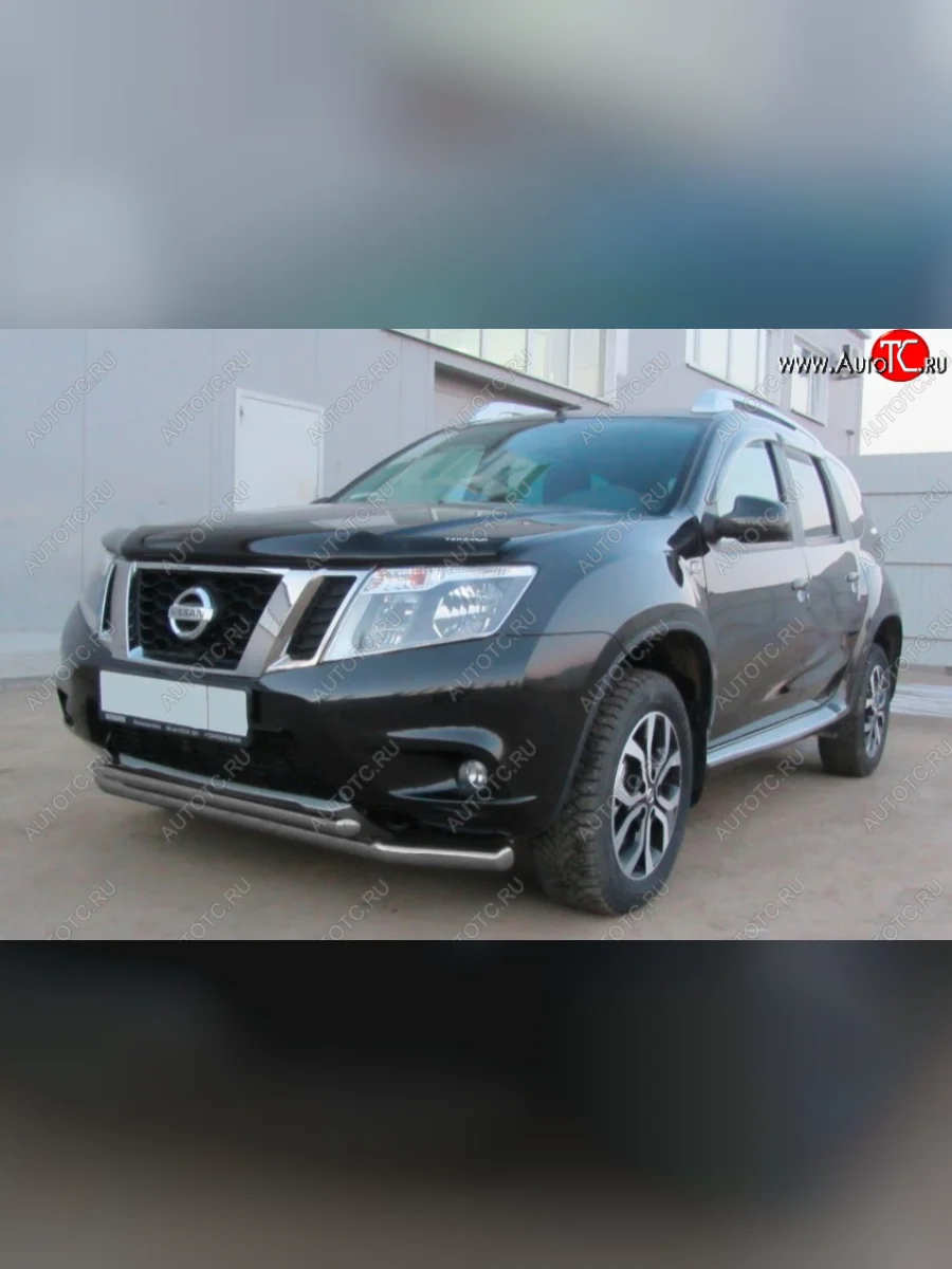 Защита переднего бампера Slitkoff (Ø 57+Ø 42, двойная). Nissan Terrano (2013-2016) D10 (Сталь с полимерным покрытием. Цвет: серебристый) В Тюмени Тюменской области